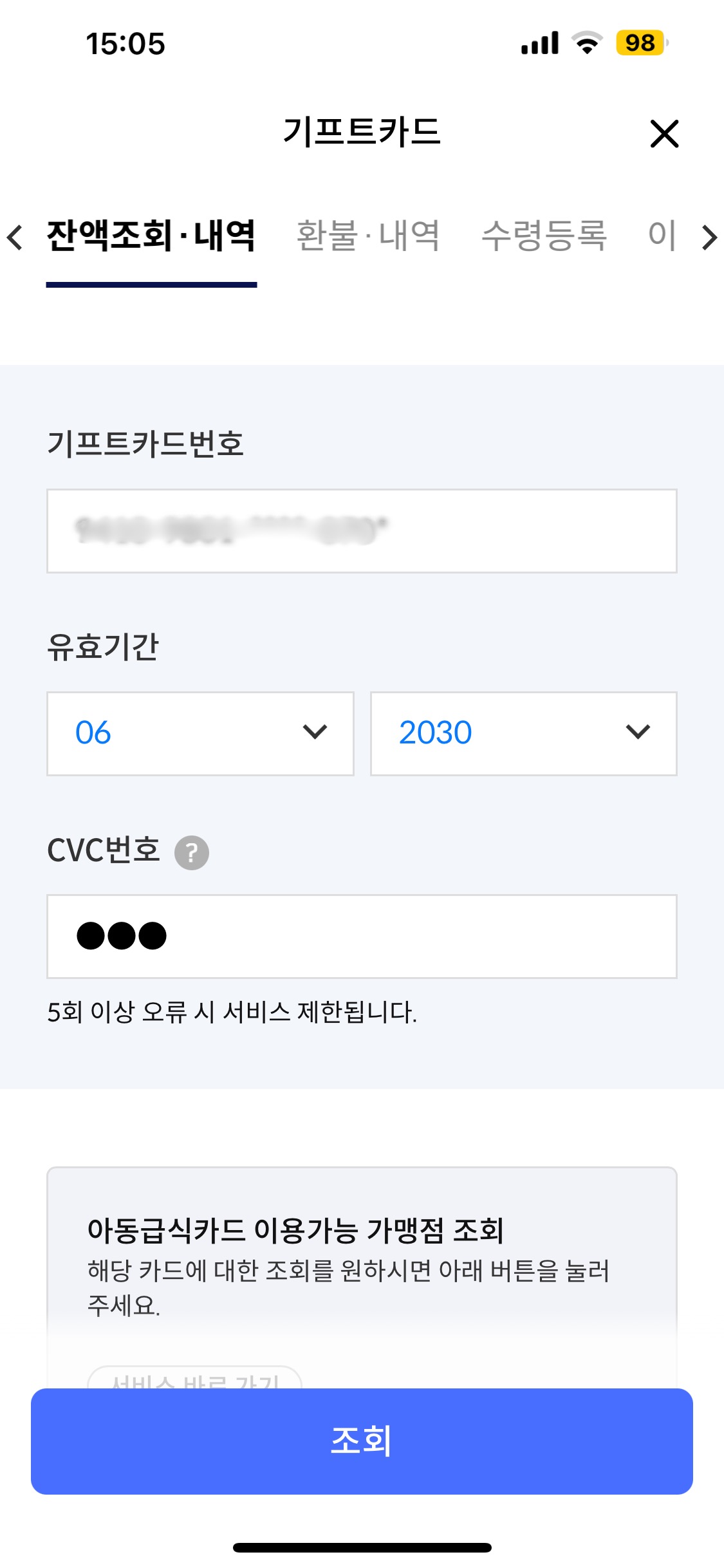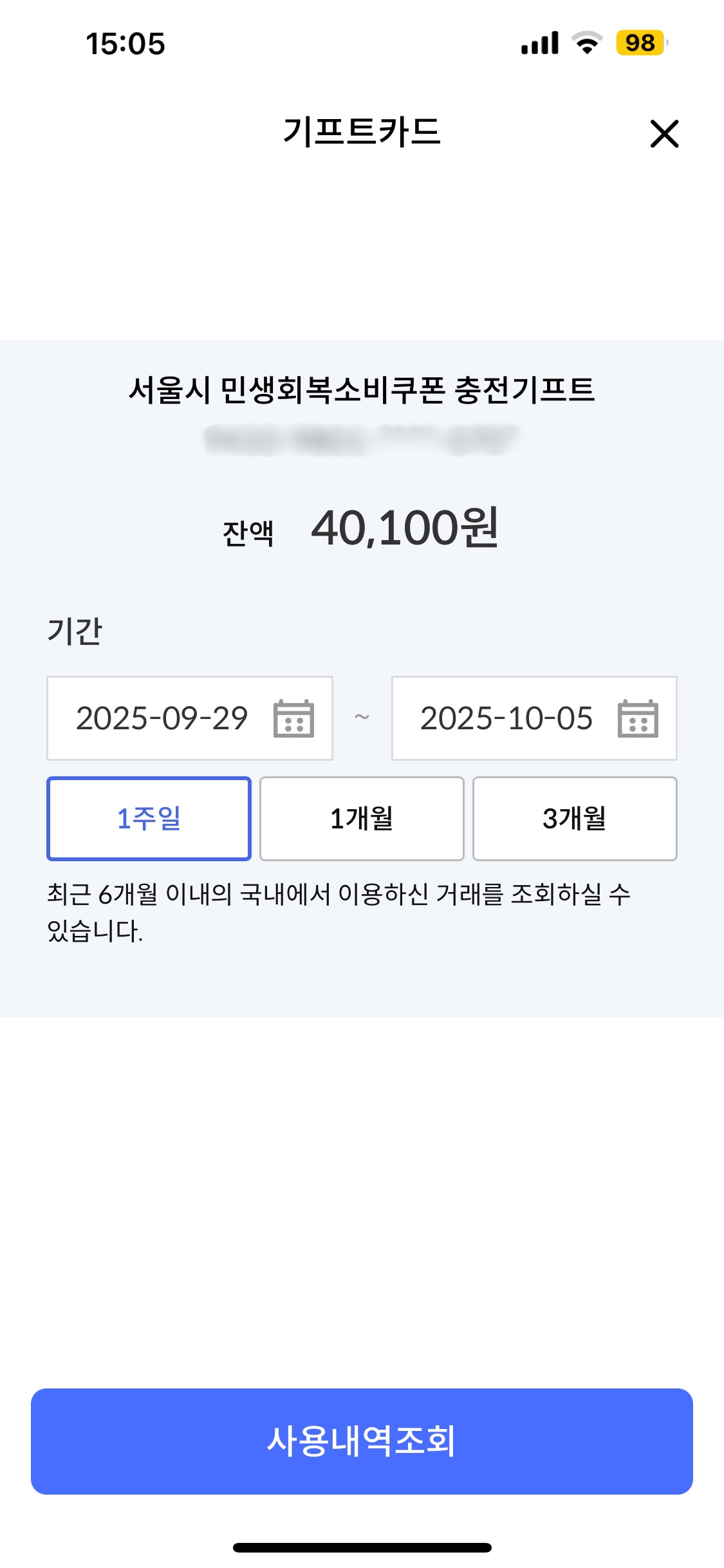 위 절차에 따라 진행하면 복잡한 과정 없이 누구나 3분 안에 민생회복 소비쿠폰 기프트카드의 잔액을 성공적으로 조회할 수 있습니다.